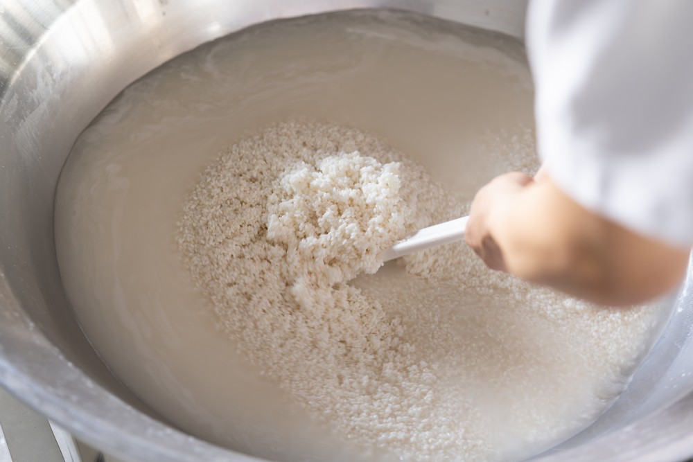 - もったりしてきたら、残りの水7ℓを追加し、さらにかき混ぜる。★★