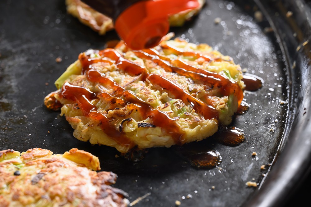 - お好み焼きソースをかけて完成。